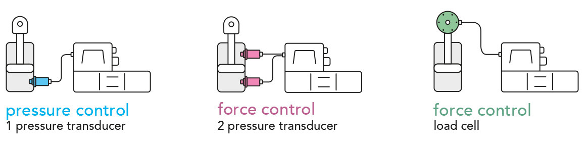 Integrate max pressure or force control to the standard flow regulation of proportional valves and pumps.